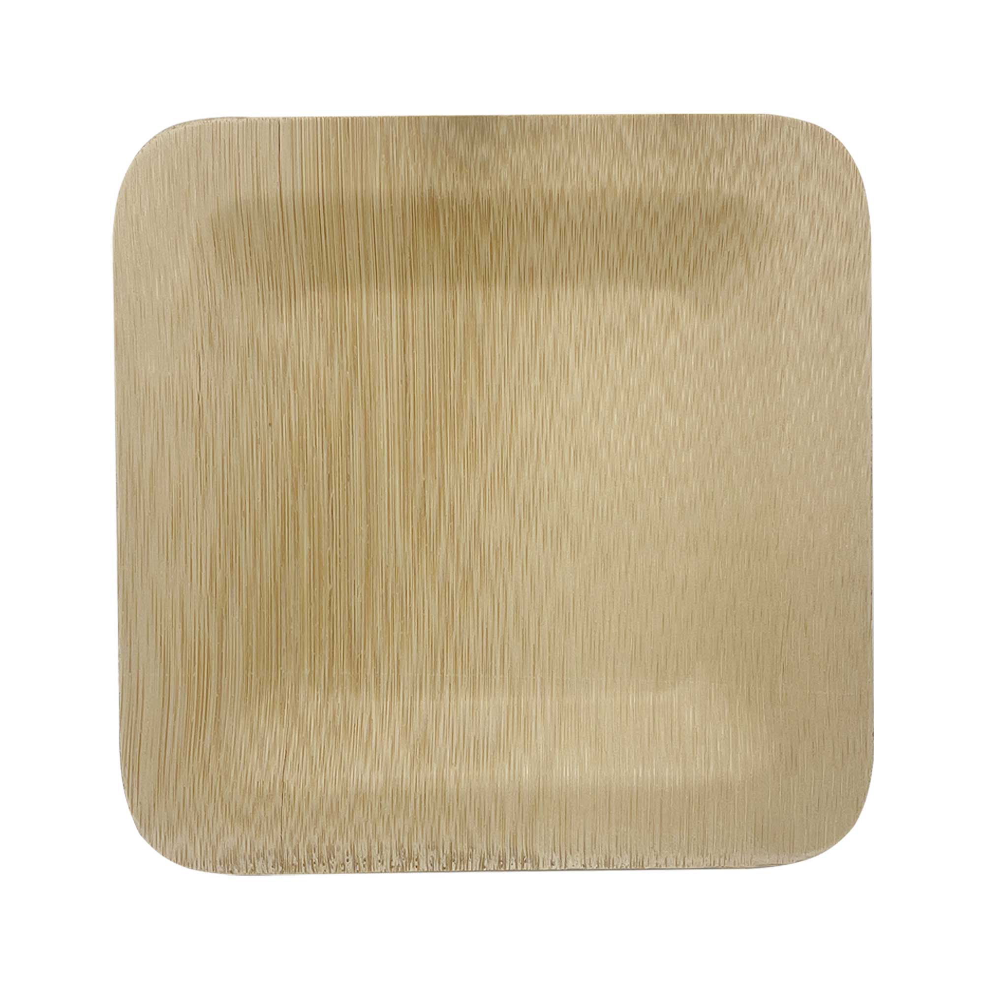 Each piece of 7" Square Bamboo plate is made from the protective covering found on bamboo plants. Harvested, cleaned, boiled, laminated to the desired thickness, and pressed into shape.