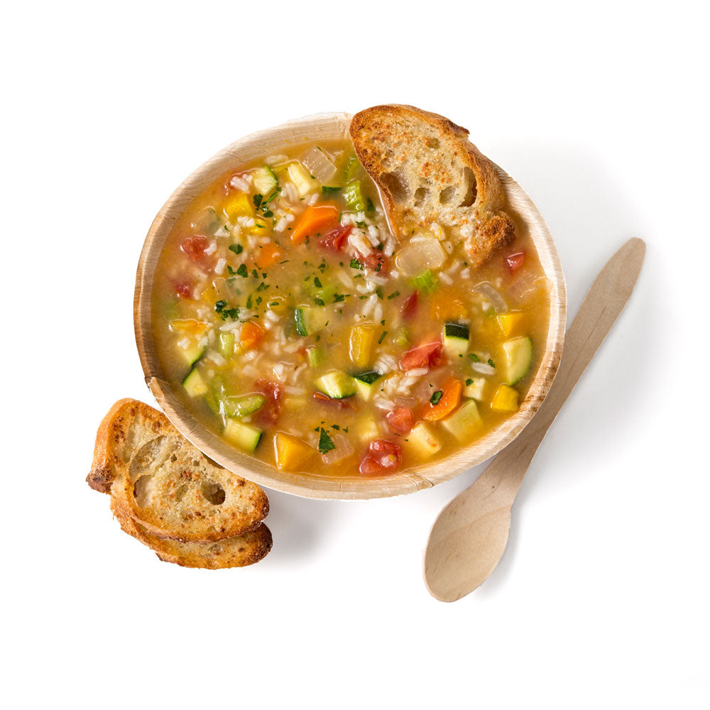 Handcrafted from fallen palm leaves, our dinnerware embodies the beauty of mother nature gifts. Each leaf is thoroughly cleaned, heat pressed, handcrafted, and fully sterilized; the result is sturdy, casually elegant dinnerware ready for everyday dining and relaxed gatherings. This 7-inch round bowl is perfect for serving soups and stews.