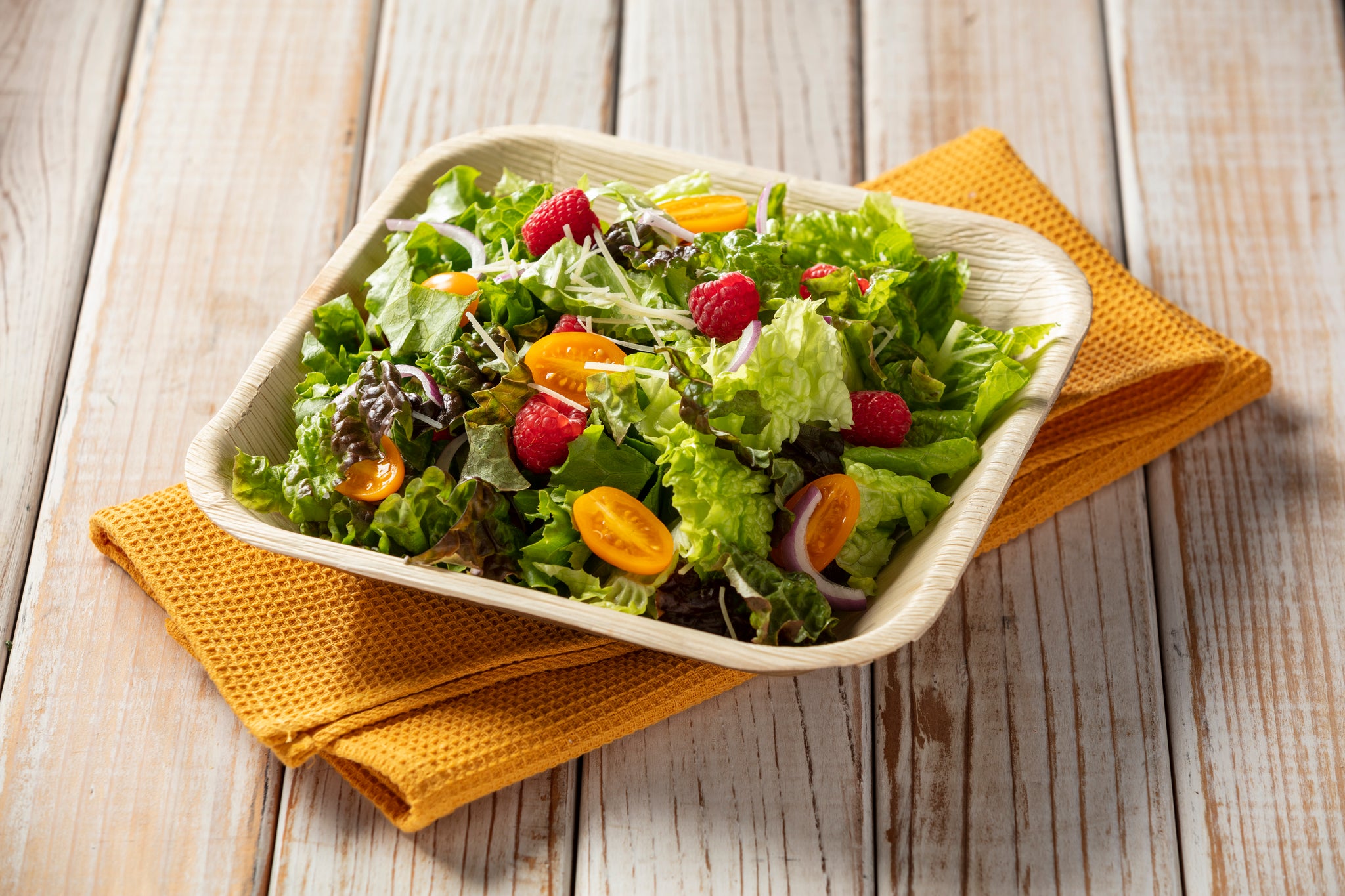 Handcrafted from fallen palm leaves, our dinnerware embodies the beauty of mother nature gifts. Each leaf is thoroughly cleaned, heat pressed, handcrafted, and fully sterilized; the result is sturdy, casually elegant dinnerware ready for everyday dining and relaxed gatherings. This 9-inch square bowl is perfect for serving soups, stews, and salads.