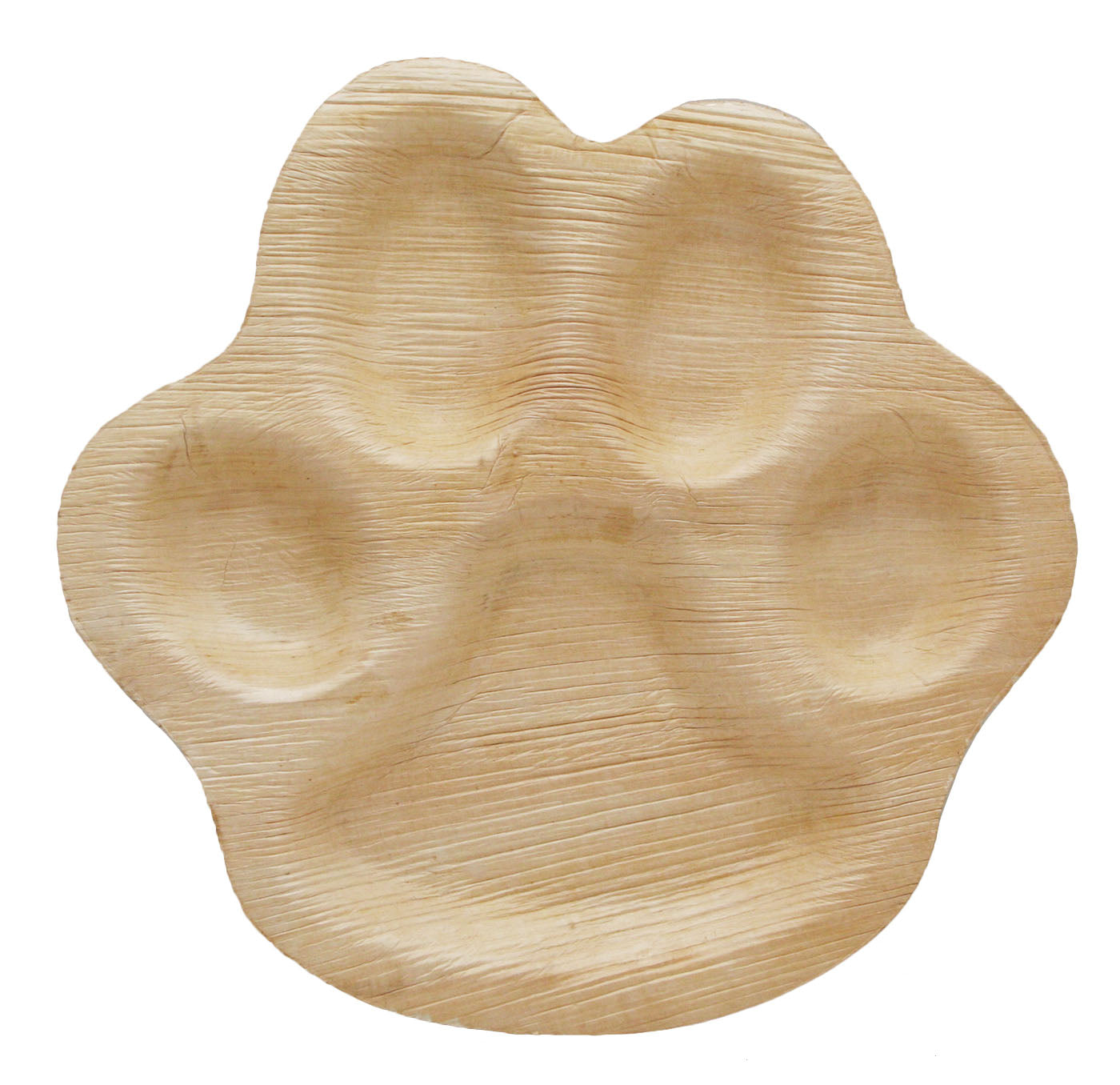 Handcrafted from fallen palm leaves, our dinnerware embodies the beauty of mother nature gifts. Each leaf is thoroughly cleaned, heat pressed, and fully sterilized; the result is sturdy, casually elegant dinnerware ready for everyday dining and relaxed gatherings. This 5 compartment plate is great for Kids parties.
